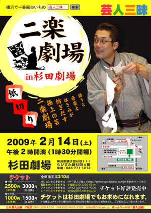 | 2月14日(土) 二楽劇場 in 杉田劇場 >ニ楽さんご案内挨拶 >ちらし |
